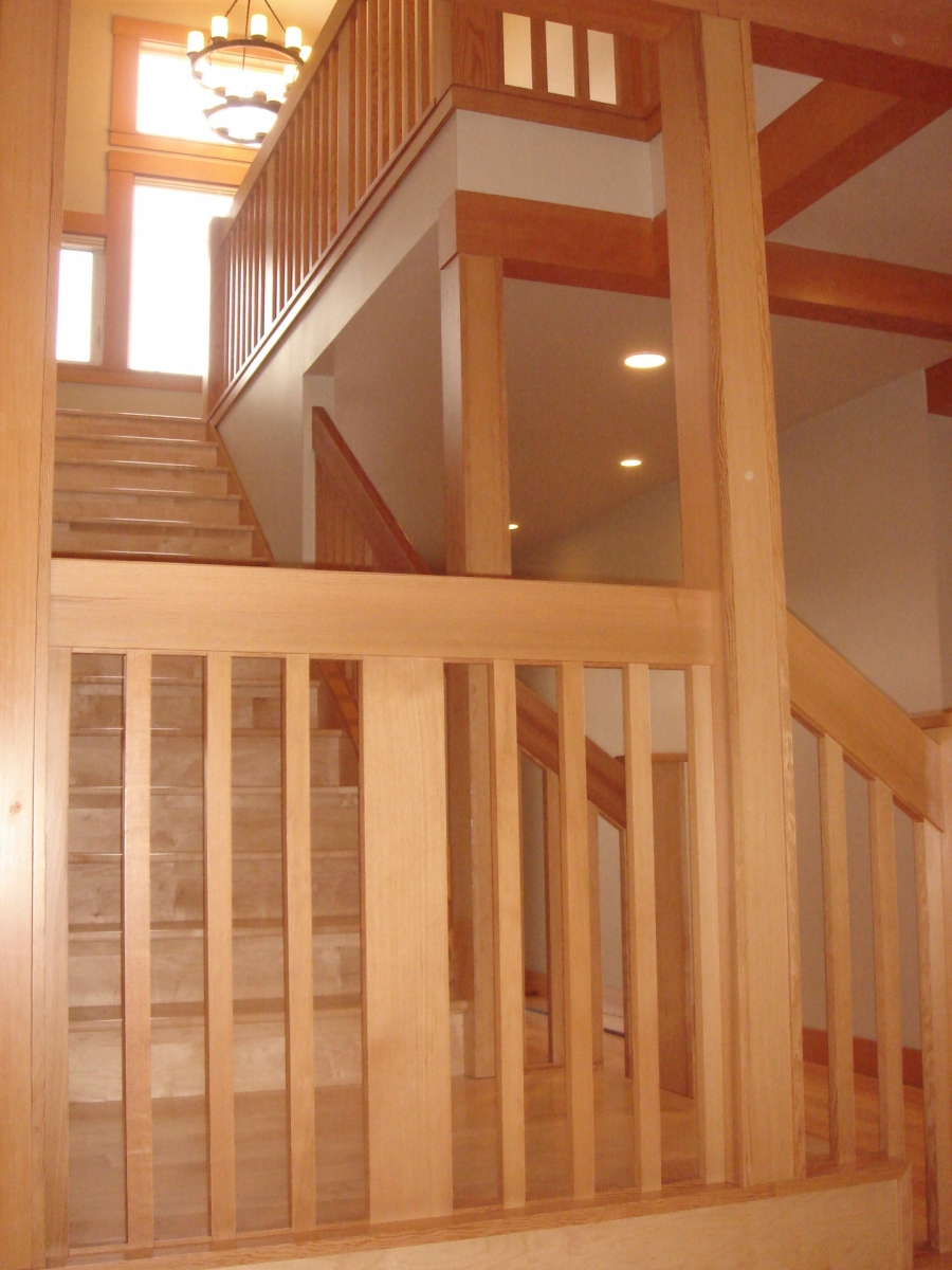 As soon as you pull into the driveway you know that this home is different from all the rest. A shaded slate stamped border wraps the driveway and continues to the front porch where your eyes are greeted in amazement. The stunning porch structure is made up of a series of 4x6 and 6x6 fir beams and columns all stained and sealed to match the cedar lap siding surrounding the main level of the house. You will have to look closely to find a single knot in the beams or the siding because there may not be any. All the wood in the home (which was provided by the owner from their family land) was cut and selected to be used in the home. The finest of quality maple, cedar and fir is not available in stores. The framing lumber, shake roof, cedar siding, maple hardwood floors, interior trim and exposed beams all were supplied by the owner.