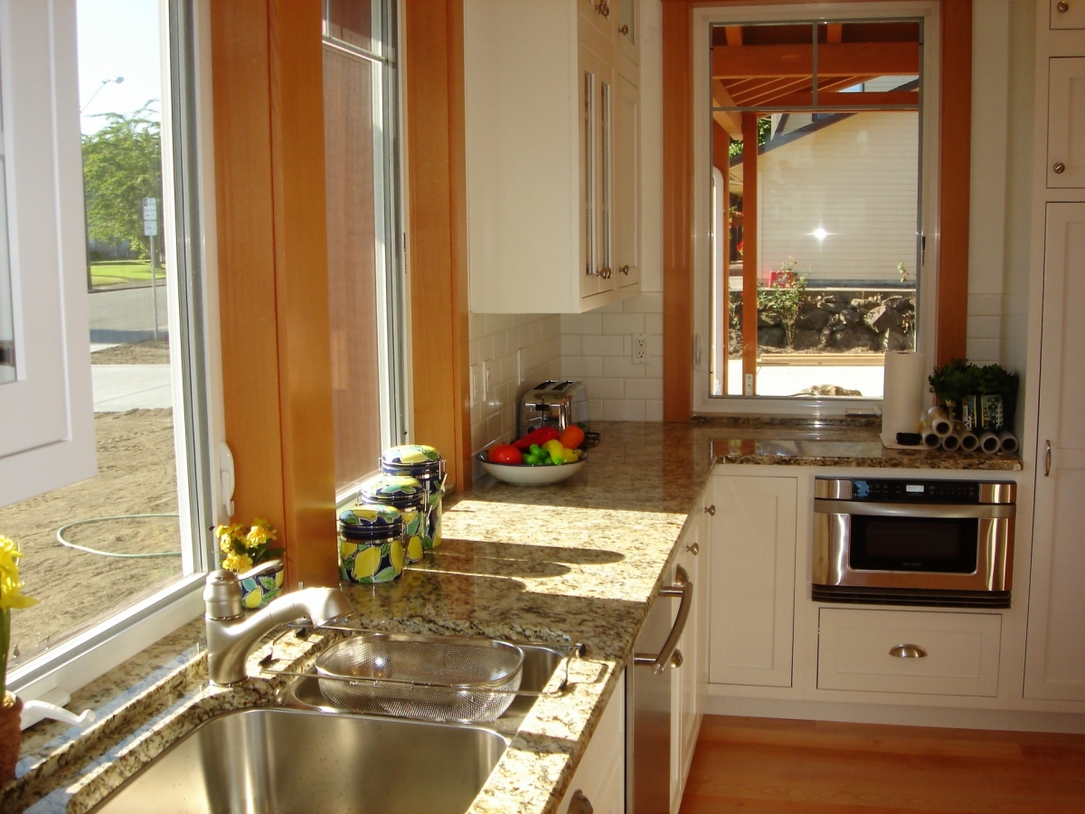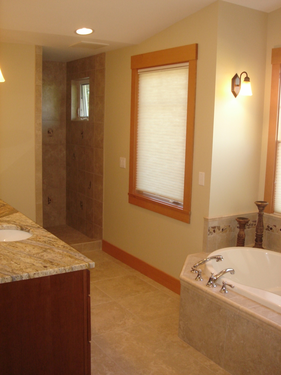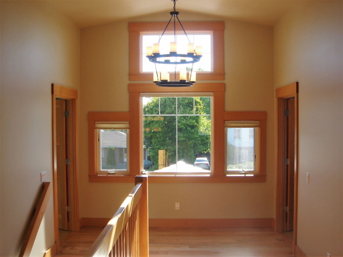 Up the maple staircase you will find the large bedrooms and great views. One bedroom has a specially built hideout above the closet with reading lights installed and the other has a reading area where the window was lowered to be able to enjoy the view better. Both rooms have a view of the nearby golf course, mountains and Puget Sound.