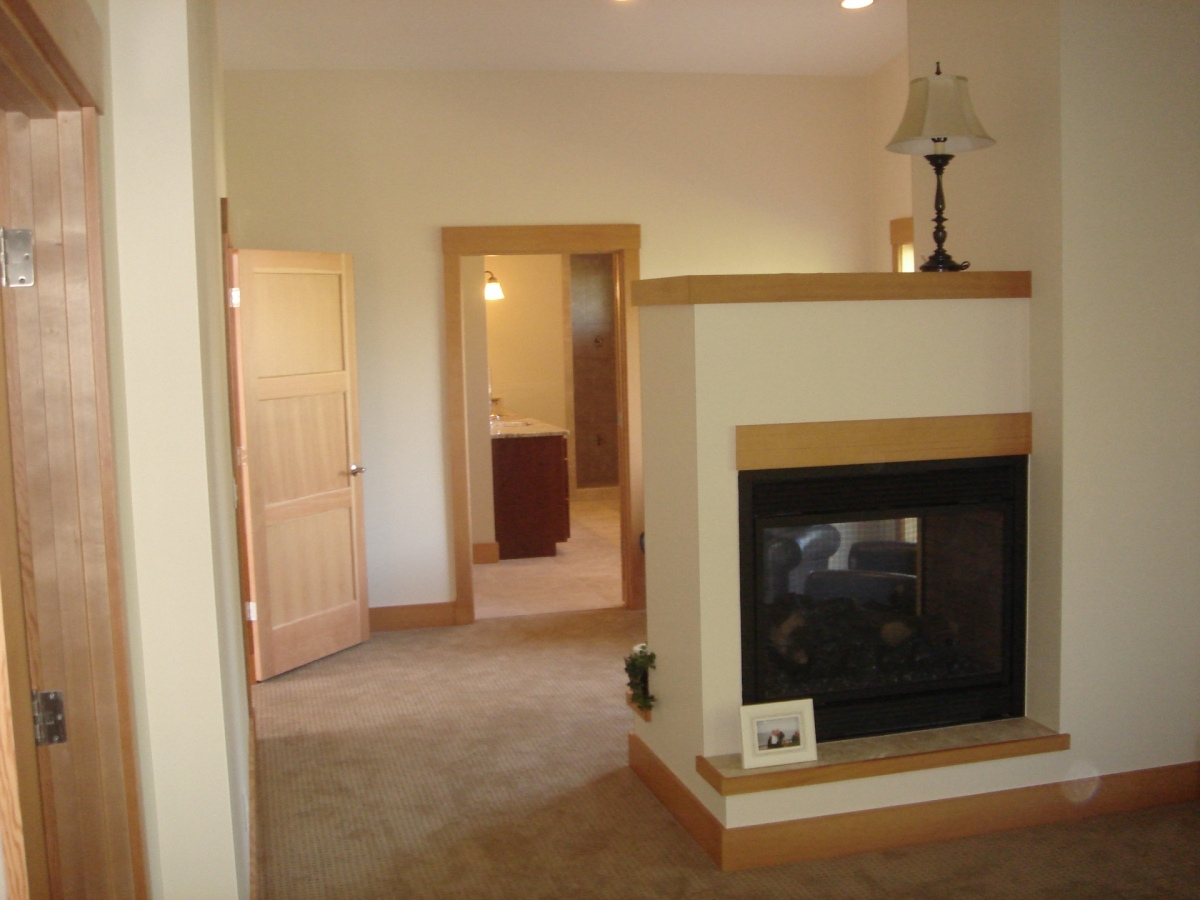 The master bedroom is it's own getaway. The door opens to the sitting area which leads to the large private tile deck with French doors, or you can go left to the master bath or right to the bedroom and large closet. The master bath has granite counters, beautiful tile accents throughout, large shower, jetted tub and heated tile floor. The sitting area and bedroom are separated by a warming, double-sided fireplace.