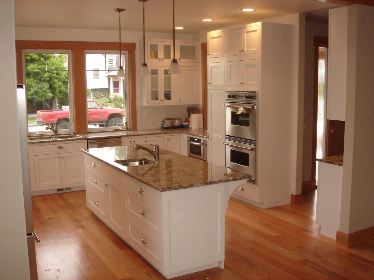 Up the maple staircase you will find the large bedrooms and great views. One bedroom has a specially built hideout above the closet with reading lights installed and the other has a reading area where the window was lowered to be able to enjoy the view better. Both rooms have a view of the nearby golf course, mountains and Puget Sound.