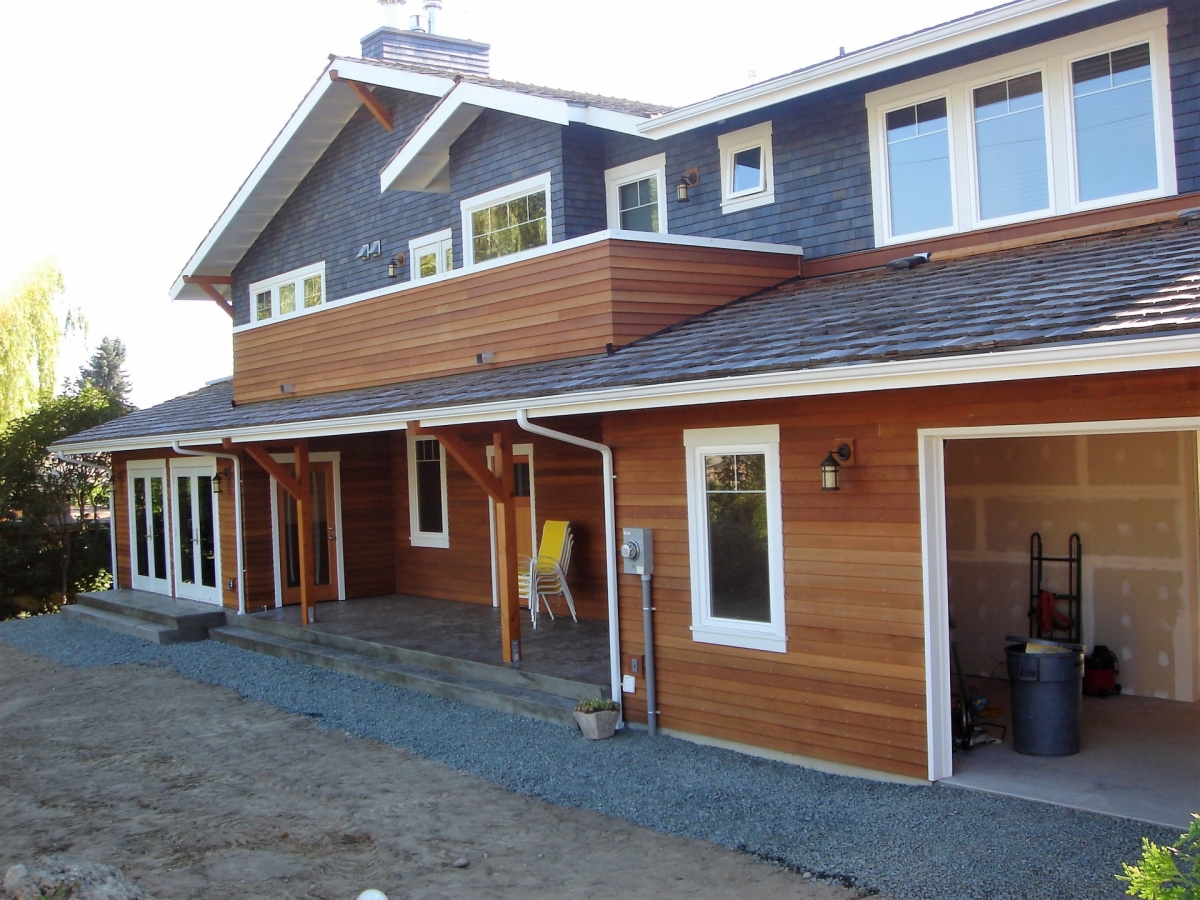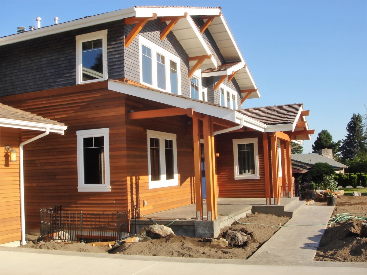As soon as you pull into the driveway you know that this home is different from all the rest. A shaded slate stamped border wraps the driveway and continues to the front porch where your eyes are greeted in amazement. The stunning porch structure is made up of a series of 4x6 and 6x6 fir beams and columns all stained and sealed to match the cedar lap siding surrounding the main level of the house. You will have to look closely to find a single knot in the beams or the siding because there may not be any. All the wood in the home (which was provided by the owner from their family land) was cut and selected to be used in the home. The finest of quality maple, cedar and fir is not available in stores. The framing lumber, shake roof, cedar siding, maple hardwood floors, interior trim and exposed beams all were supplied by the owner.