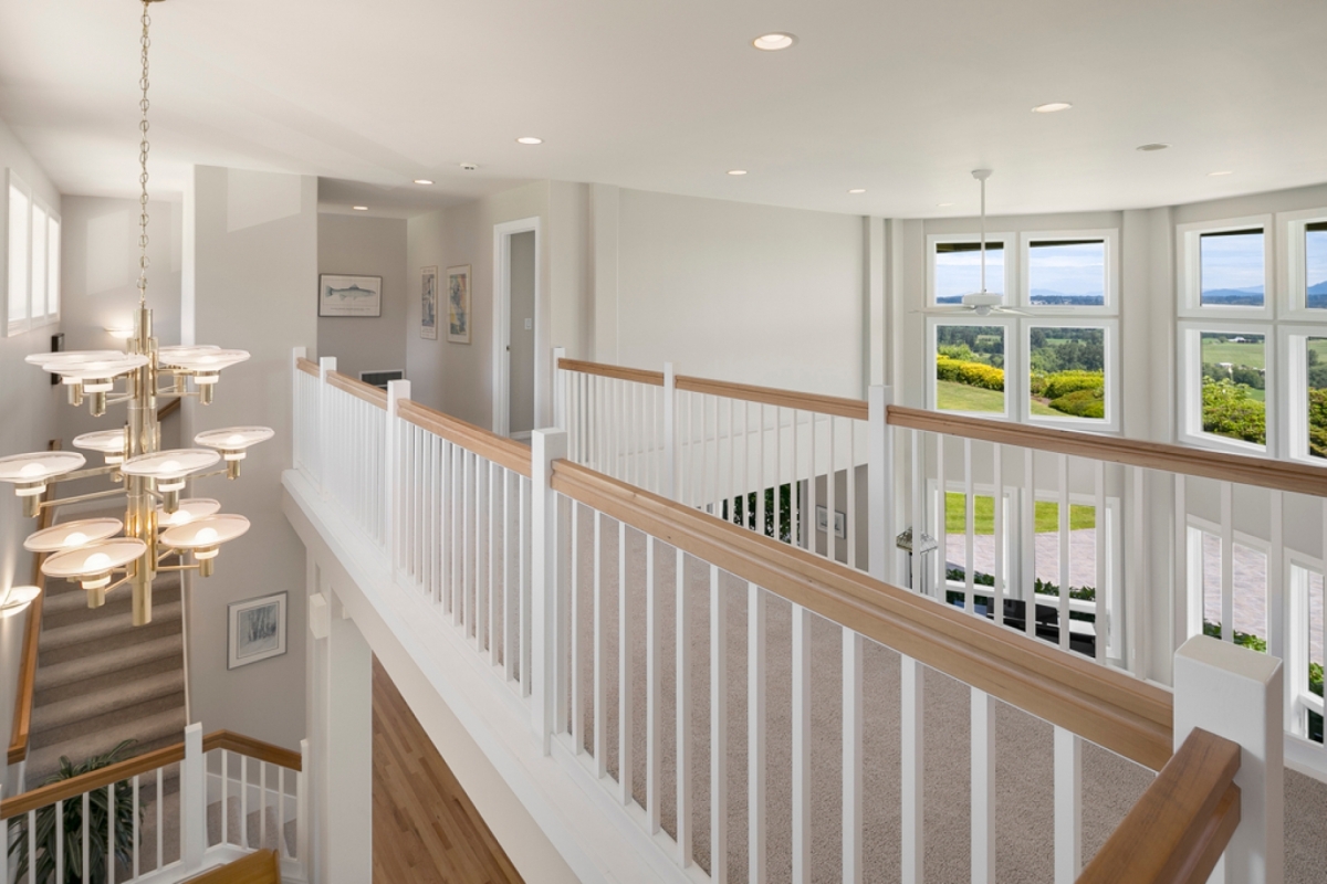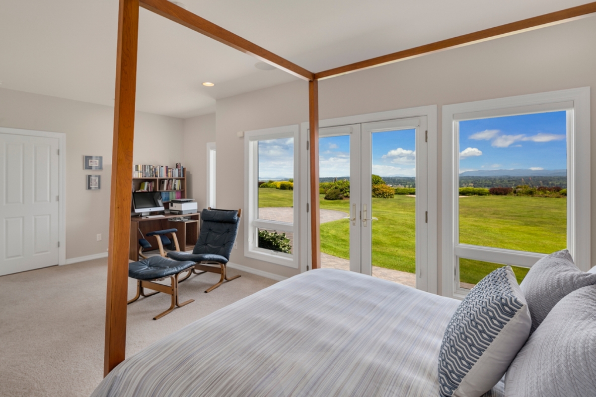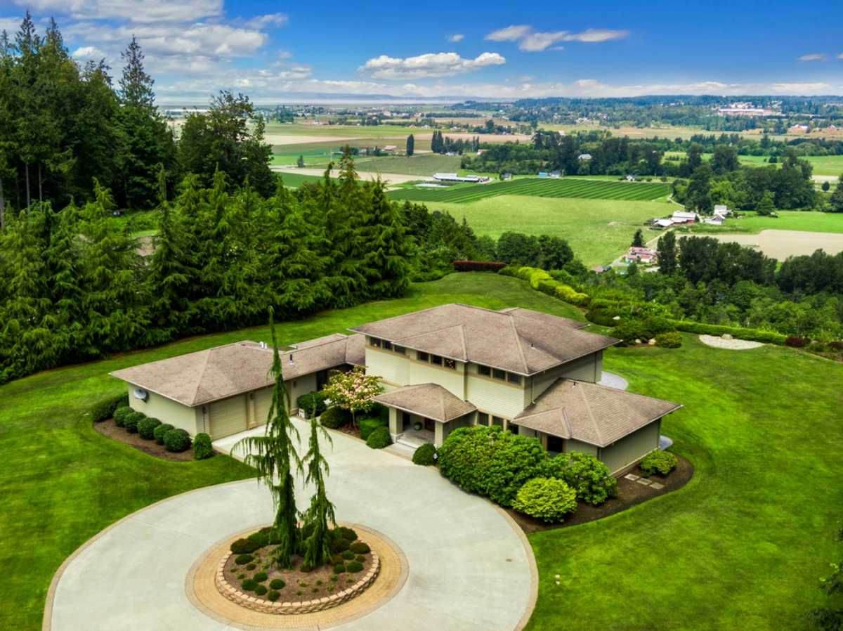Overlooking the Stillaguamish River, the owners of this home enjoy it both inside and out. A garden is surrounded by a large circular driveway that leads to a 2 car garage with a mudroom and laundry room separating it from the house. At the front entrance stand two custom crafted columns before entering the home. Once inside, the home opens up with vaulted ceilings from the foyer to the living area. Lots of light is let in through the 4 large windows with views to the valley below. A second floor bridge is also seen that joins the two upstairs bedrooms and bathrooms. Just behind the living area is the dinning area with recessed lighting and windows as well. The kitchen area has plenty of counter space, a pantry, and windows that also look out to the yard and valley. On the opposite end of the home is the master bedroom. This room has patio access to the backyard and the large master bath.